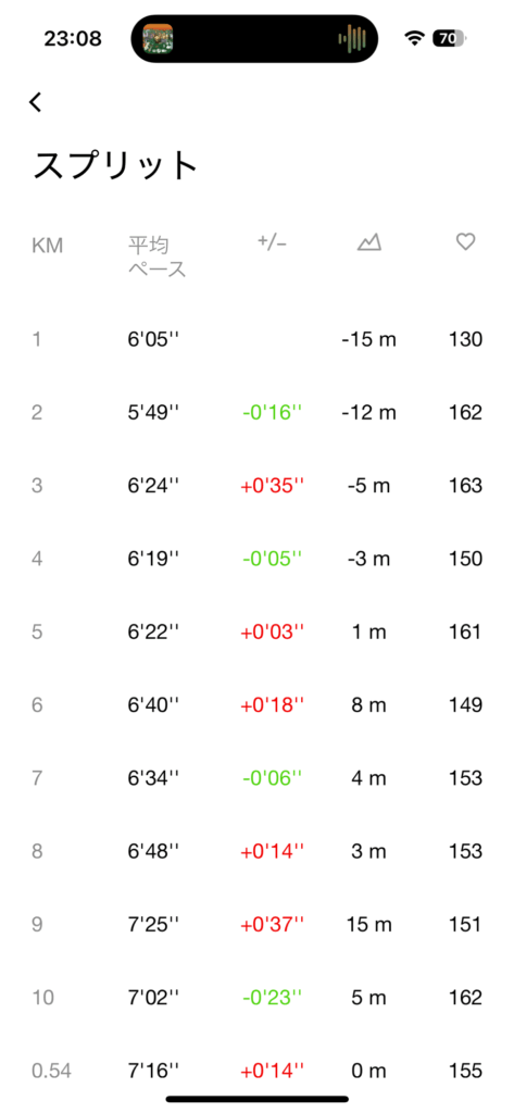 筋トレの後に走ったからなのか、ラン中の脚の重みが取れず走りにくかったです。