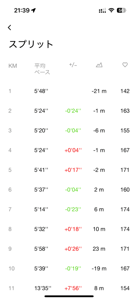 という気持ちがこみ上げてきて何とか最後まで平均ペース5分半で走りきれました。