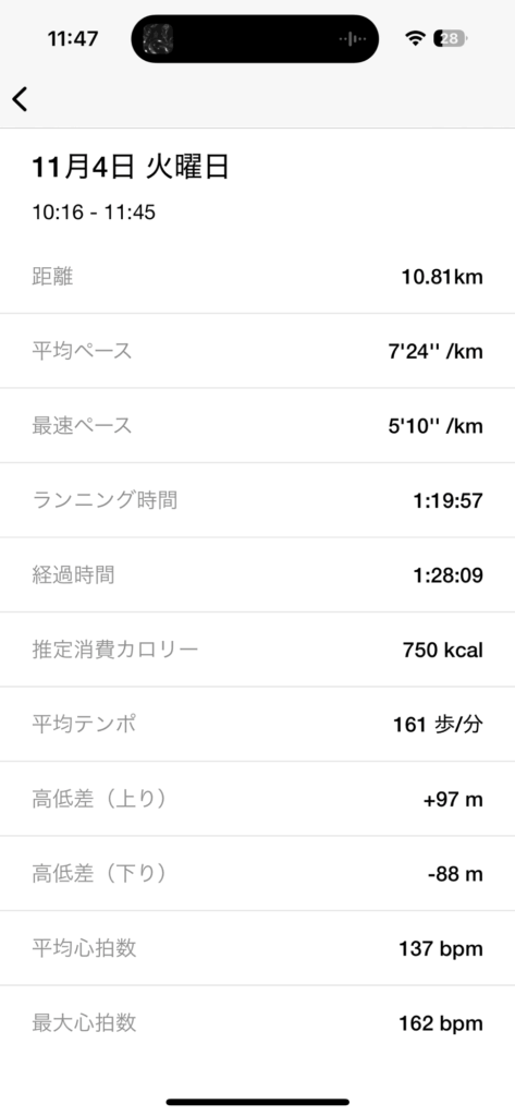 12時間前にも10kmランした事もあって身体が回復しきってなかったので身体痛かったけど最後まで走り切りました。