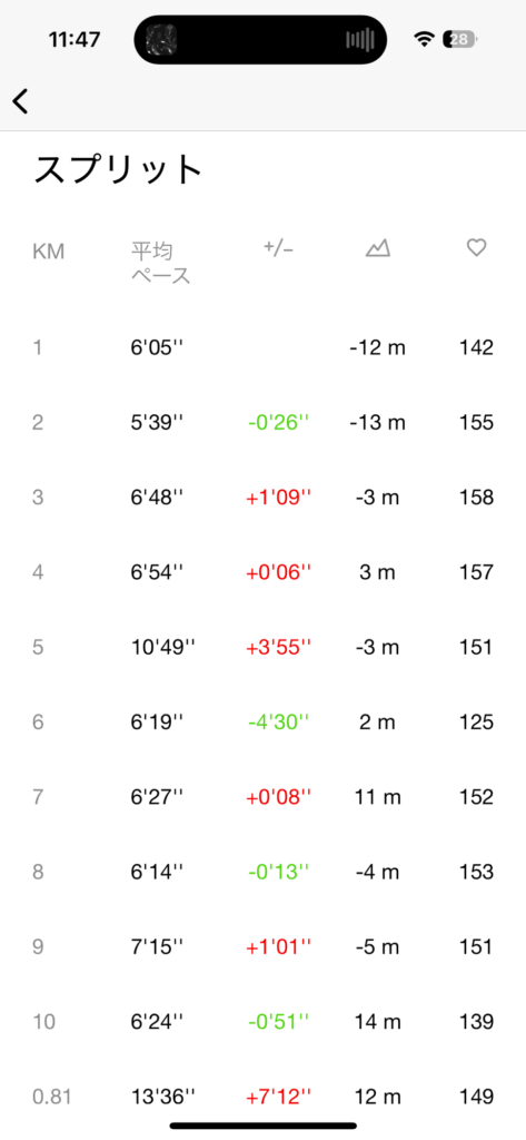 けっこう歩いたりしたので平均ペースはだいぶ遅いです。